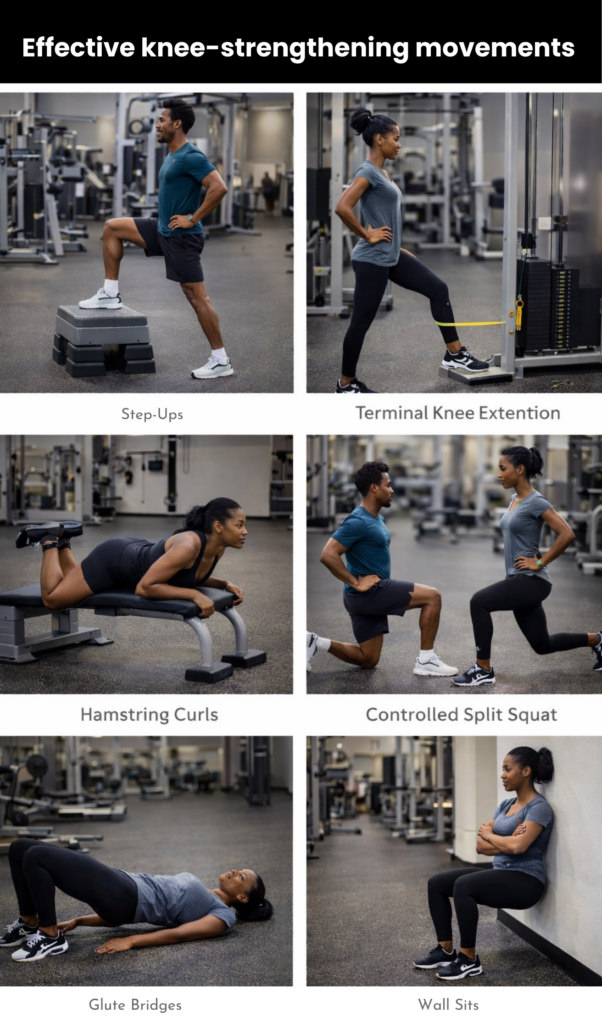 After knee pain, many people subconsciously avoid loading the joint. This leads to weakness, instability, and recurring pain.