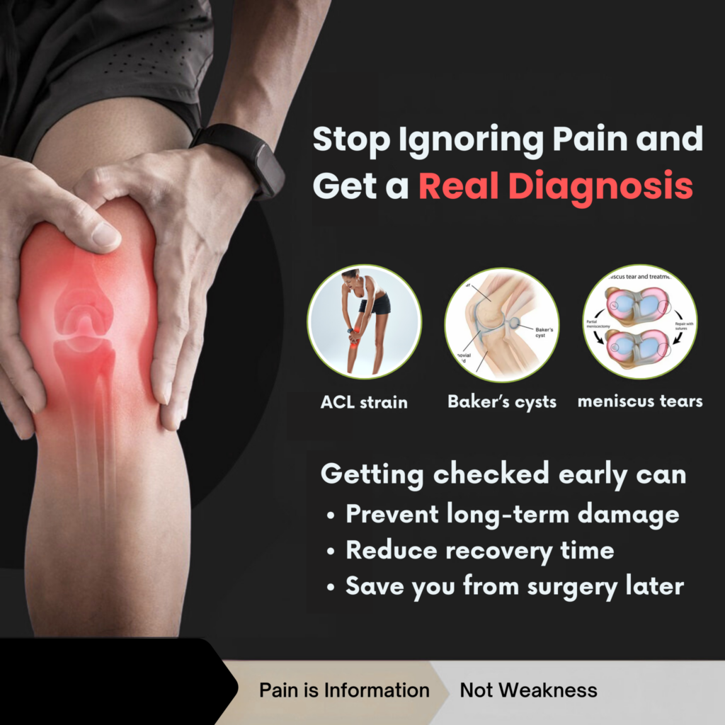 Many knee issues—ACL strain, meniscus tears, Baker’s cysts, cartilage wear—can’t be diagnosed properly without imaging.